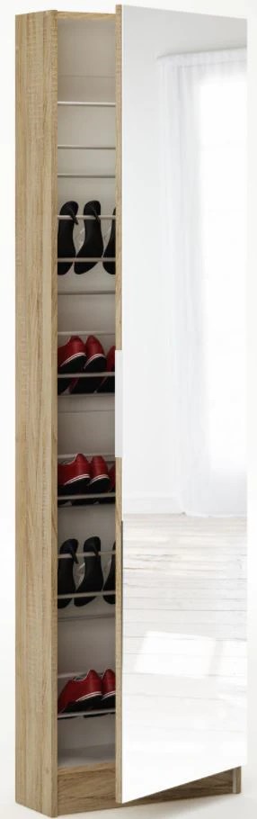 Koblenz ormarić za cipele sa ogledalom 58x17x177 cm natur. Na vivre.hr možete pronaći raznoliku paletu stalka za cipele koji vam pomažu u održavanju cipela organiziranim. Ormarić za cipele natur boje sa ogledalom. Pomoću ormarića za cipele organizirajte i učinite svoj hodnik ili predsoblje urednim. Pogledajte ponudu raznih modela, boja i veličina. Viv40hr ormarić za obuću taffy. Pogledaj našu ponudu praktičnih ormara i uvjerit ćeš se da imamo sve od ormara po mjeri i otvorenih ormara.. Ormarići za cipele i predsoblja snižena su 20%.